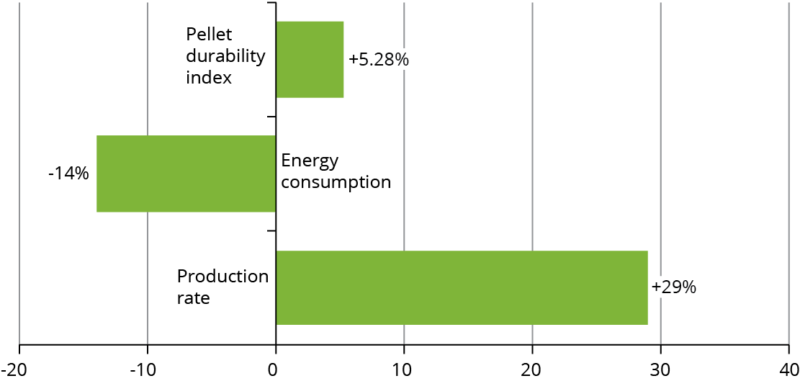 - Cải thiện 5,3% Chỉ số độ bền viên (Pellet Durability Index – PDI)